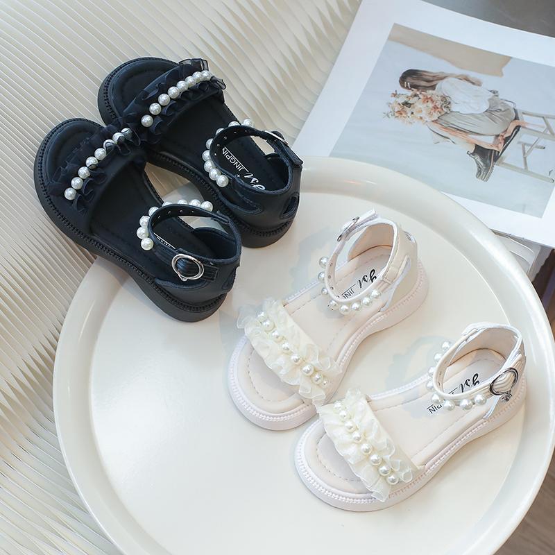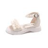 Плиссированные сандалии принцессы для девочек, детские сандалии-гладиаторы, модные детские сандалии на плоской подошве с жемчугом, однотонные сандалии с липучкой, 2024 г., новинка
