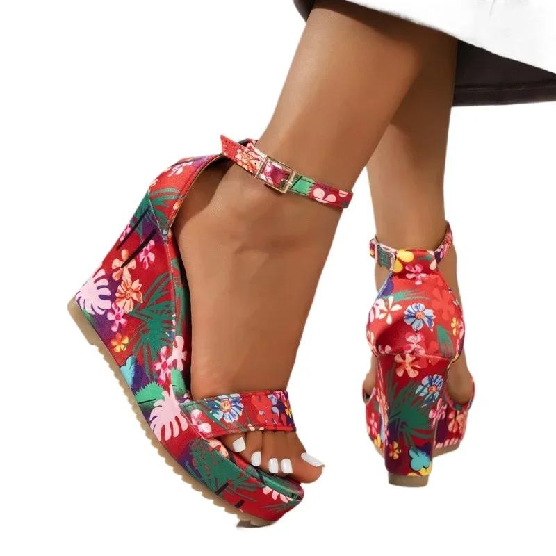 2024 Летняя высококачественная женская обувь с открытым носком на танкетке, женские босоножки, модная однострочная пряжка, женская обувь на каблуках
