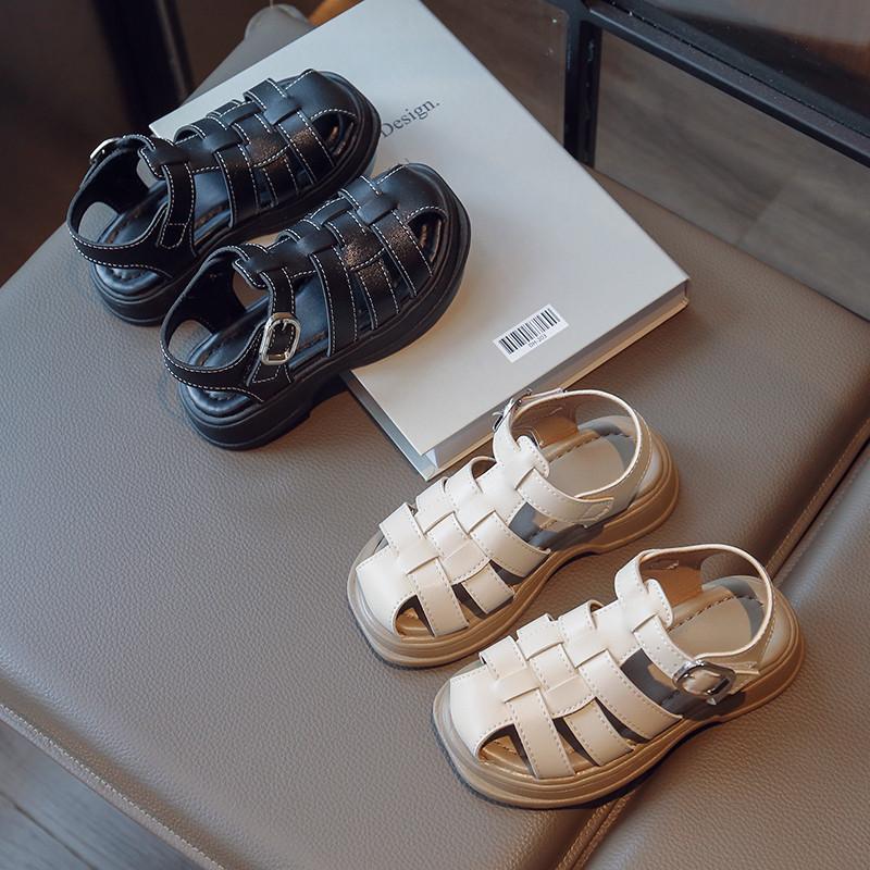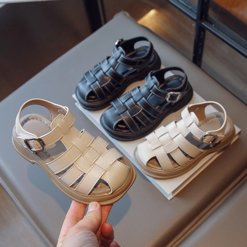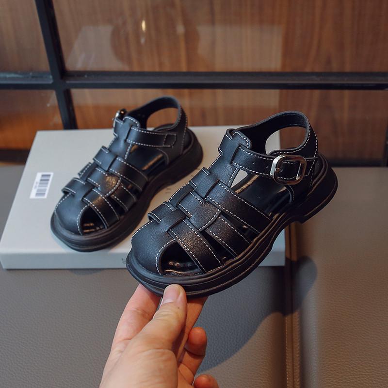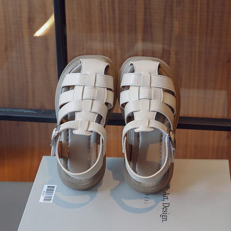Детские туфли с плетеными носками, однотонные классические детские римские сандалии для мальчиков и девочек, повседневные полые туфли в британском стиле