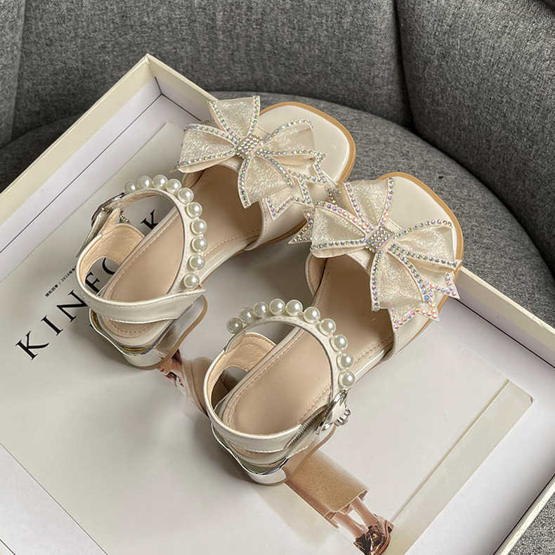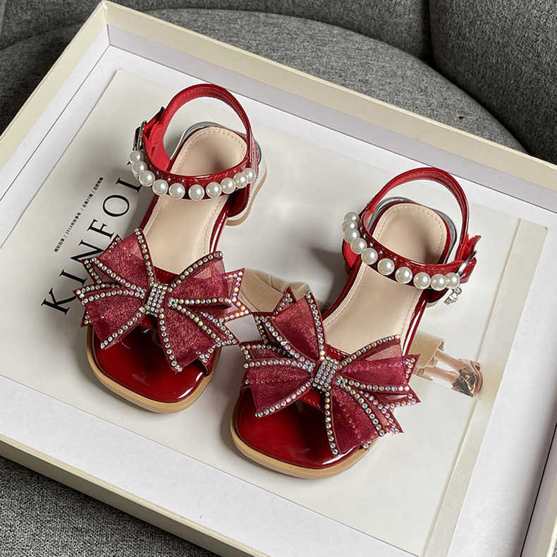 Детская мода сандалии для девочек с открытым носком на низком каблуке универсальные детские туфли принцессы Мэри Джейн для вечеринок свадебных шоу лето 2024
