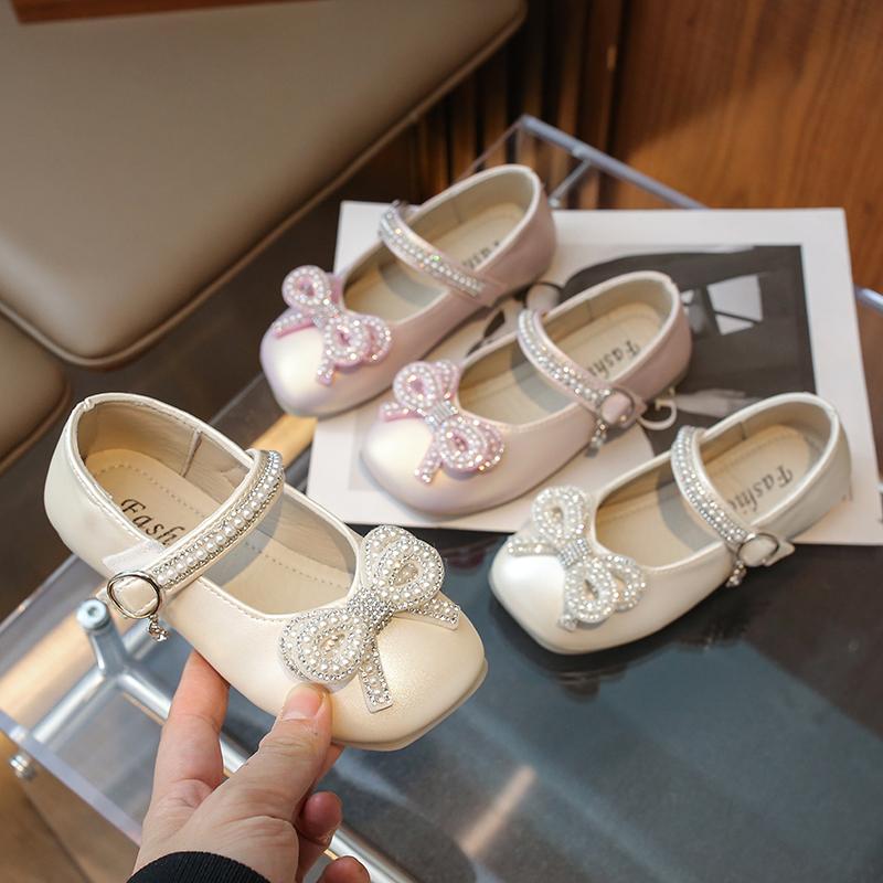 2024 Новые туфли Мэри Джейн для девочек на вечеринку, свадьбу, шоу, милый бант, стразы, жемчуг, однотонные детские модные кожаные туфли, повседневные