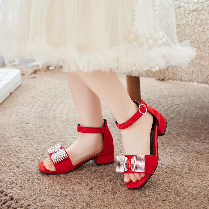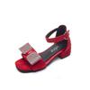 2024 Новые детские сандалии для девочек, симпатичные, со стразами, с открытым носком, дышащие, элегантные, детские, модные, милые, с застежкой-липучкой, на низком каблуке