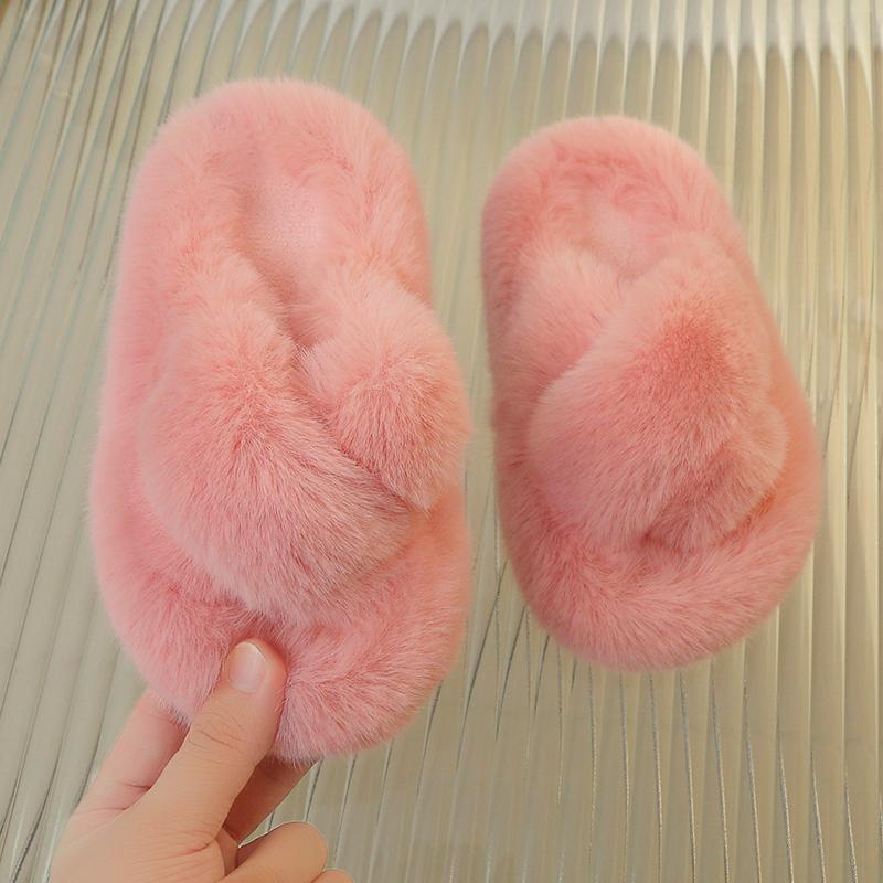 Детские теплые домашние тапочки зимние мягкие пушистые тапочки с открытым носком для девочек на плоской подошве модные универсальные детские повседневные туфли с открытым носком из хлопка
