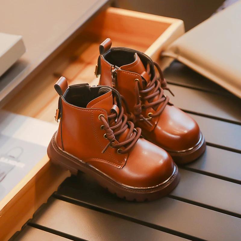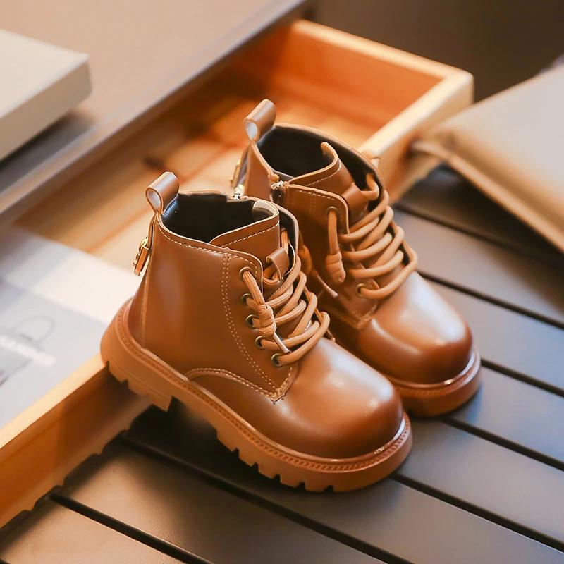 2024 Детские хлопковые ботинки для девочек, зимние, новые, модные, удобные, в корейском стиле, повседневные, нескользящие, универсальные, кожаные ботинки