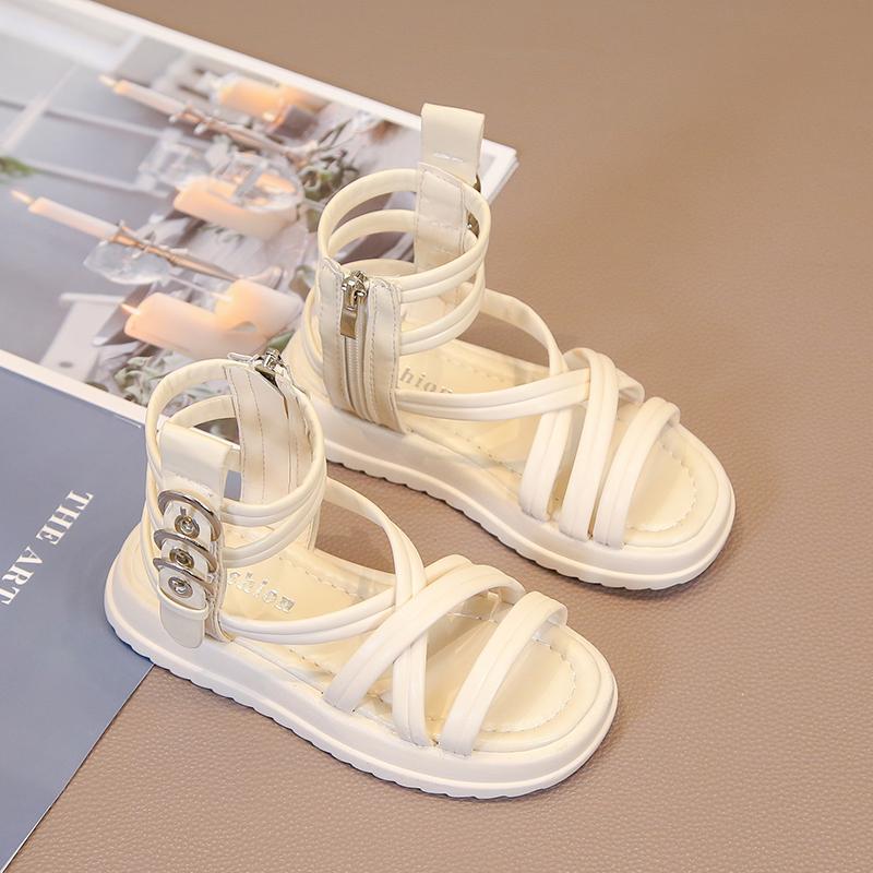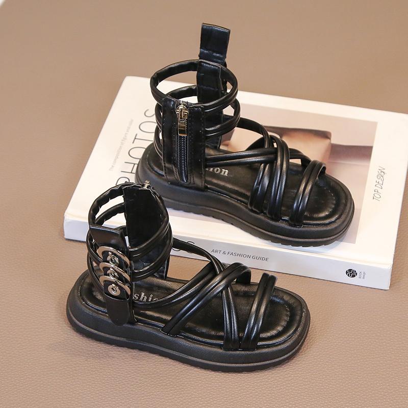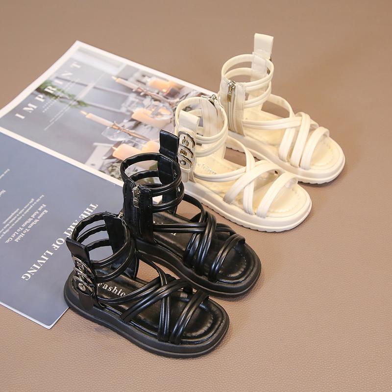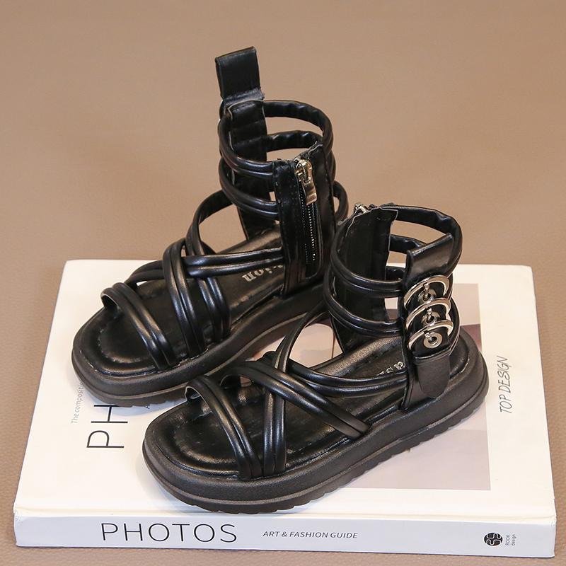 Летние сандалии-гладиаторы для девочек с боковыми молниями и металлическими пряжками Deco Cool Fashion 2024, летняя абсолютно новая детская пляжная обувь с высоким верхом