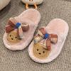 Шикарные детские тапочки для девочек с милым медвежонком и бантом, детская зимняя обувь, мягкая подошва, пушистая, модные, милые, хлопковые тапочки для малышей