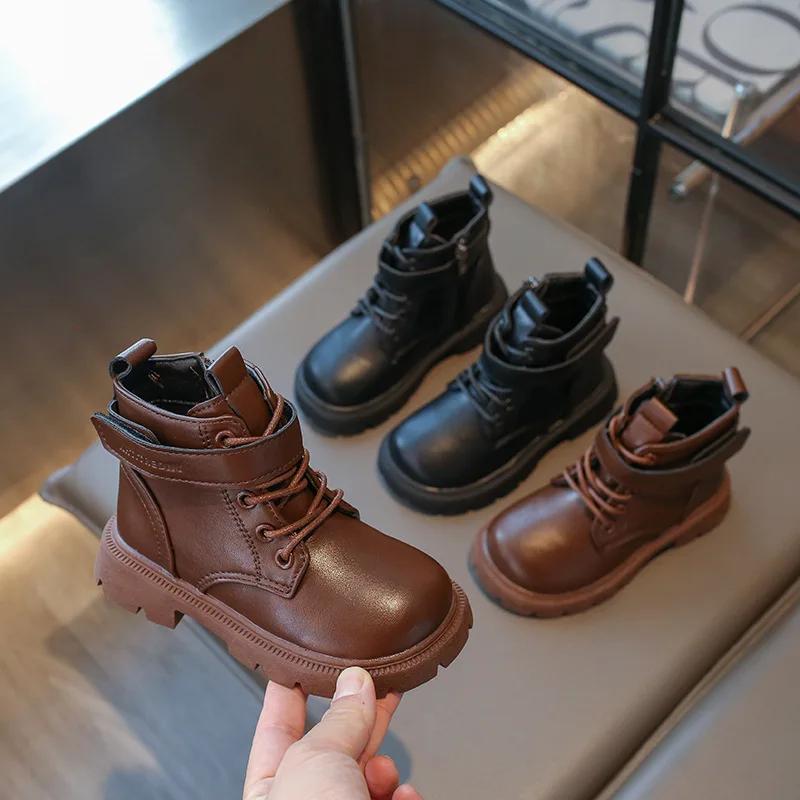 Детская обувь Ботинки для девочки Черные Коричневые Универсальные Детские Ботильоны на платформе Повседневные Универсальные Модные ботинки для малышей Мягкая подошва