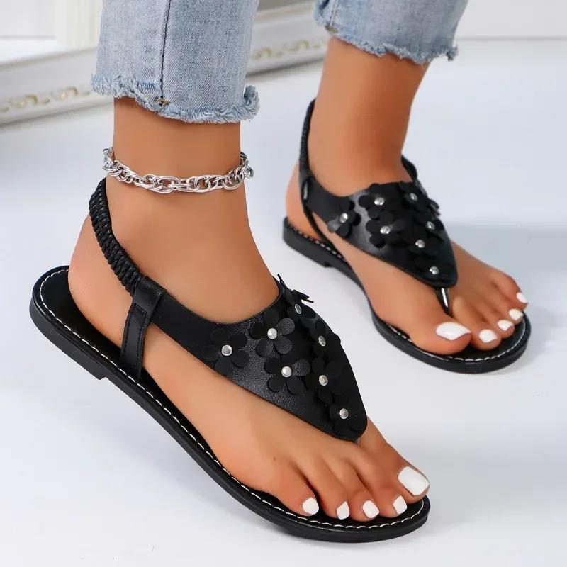 2024 Летняя высококачественная женская обувь Модные женские сандалии с блестками и цветочным декором Цветные блоки Большие размеры женской обуви
