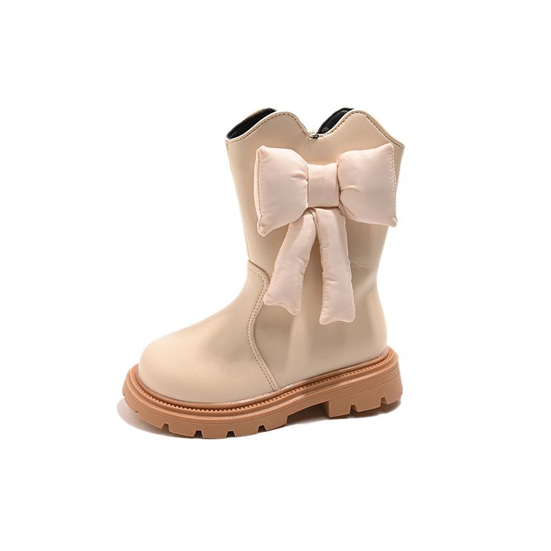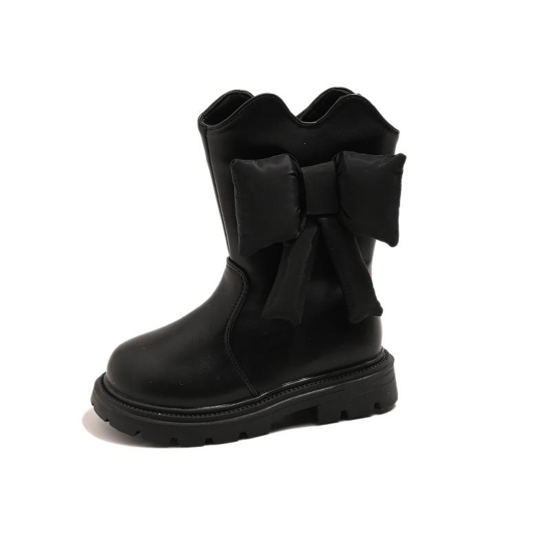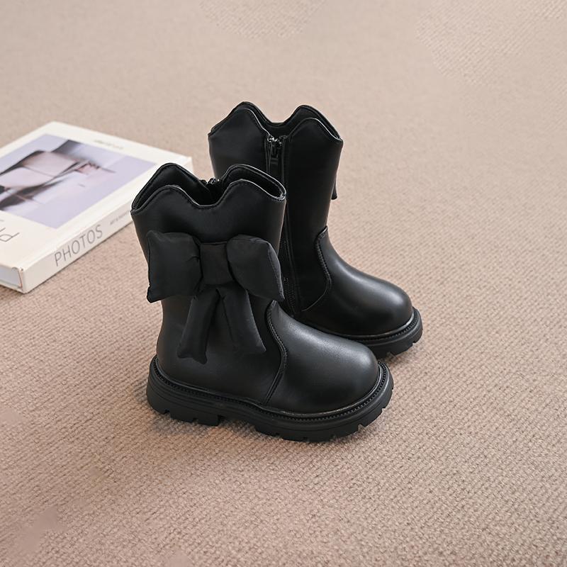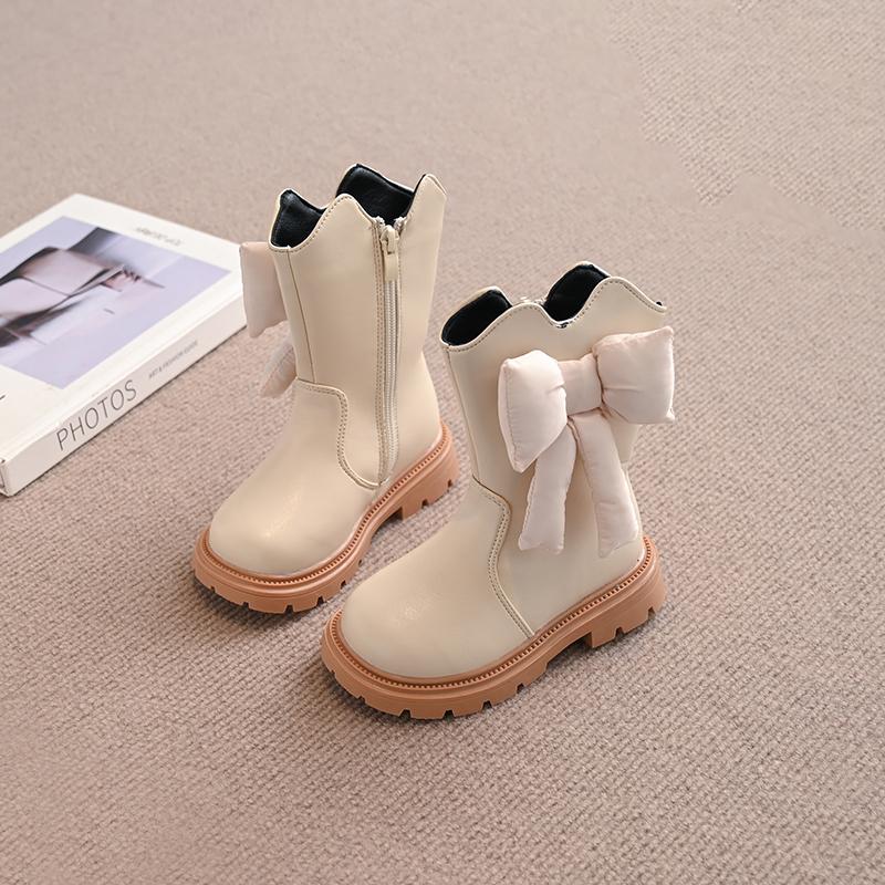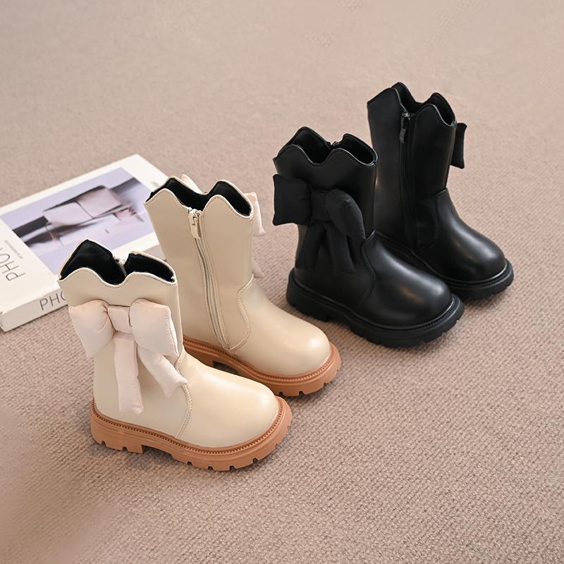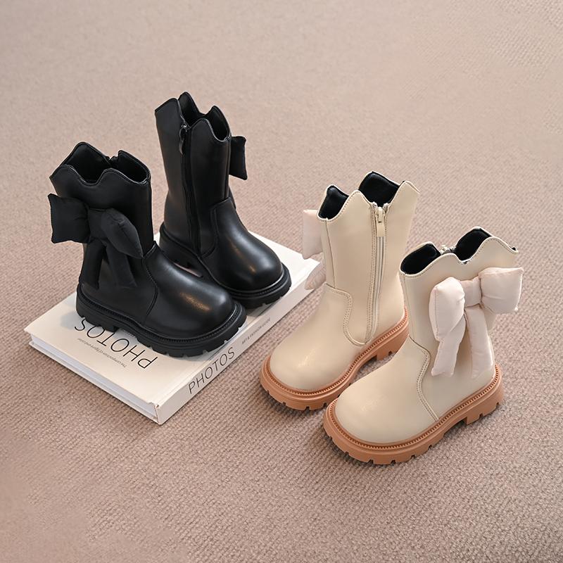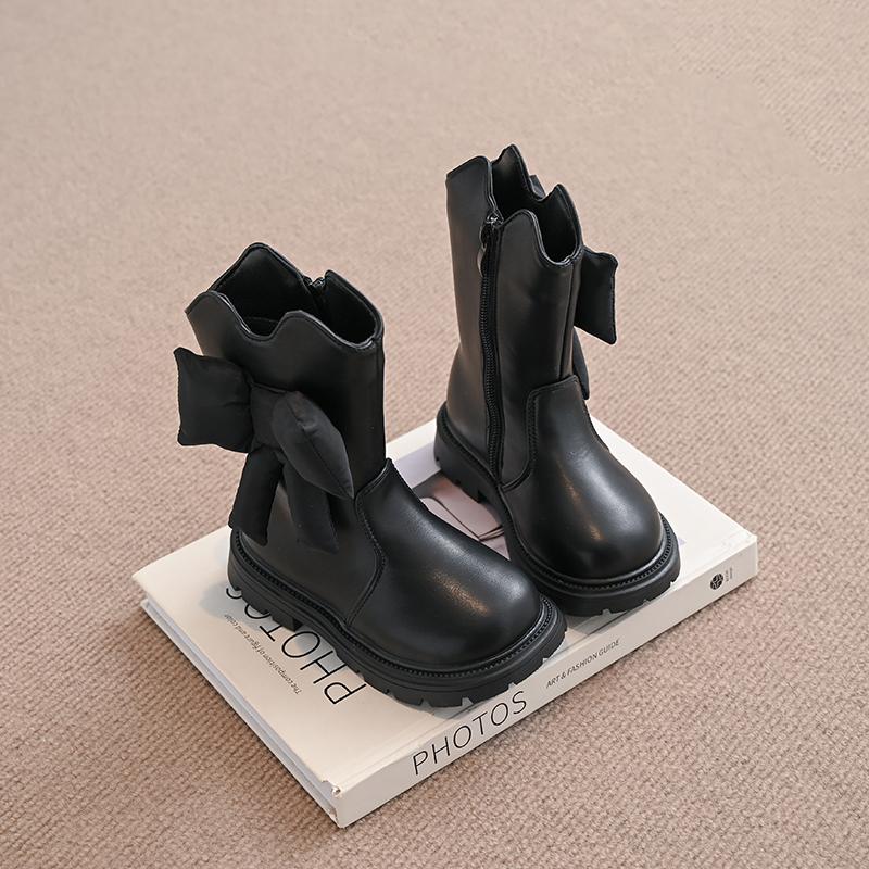 Ботинки из кожи для девочек, мягкие модные детские сапоги принцессы с большим бантом, детские сапоги для подиума, универсальные, осень-зима 2024, новинка