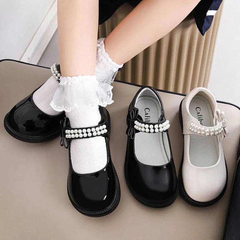 Детские кожаные туфли, черные школьные туфли для девочек, универсальные повседневные детские модные туфли на плоской подошве, нескользящие, весна-осень