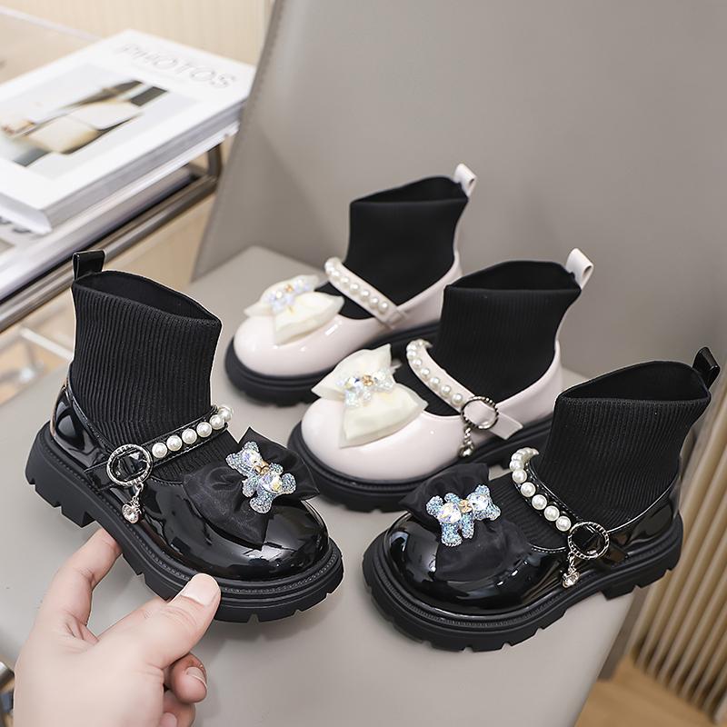 Детская обувь, ботинки для девочек, зимние ботильоны принцессы, универсальные, милые, с бантом, детские модные, повседневные, носки, ботинки с толстой подошвой