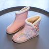 Детские хлопковые сапоги для девочек с вышитым кроликом 2024 года, детские зимние сапоги из теплого толстого плюша с мехом в китайском стиле