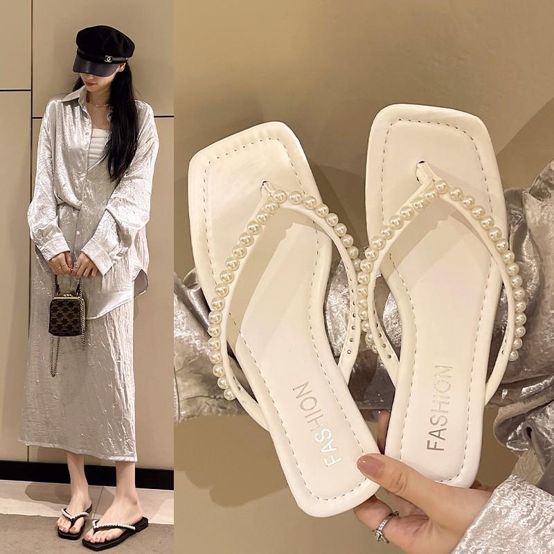 2024 Новая Мода Горячие Продажи Женские Шлепанцы Шлепанцы с Перемычкой Между Пальцами Носить Отделка Бисер Однотонные Удобные Универсальные Повседневные Zapatos