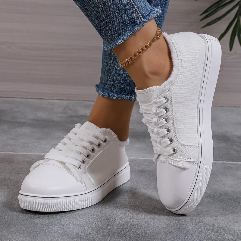 2024 Весна и Осень Женская Обувь Модная Круглый Носок Однотонная Плоская Подошва Повседневная Женская Спортивная Обувь Большого Размера На Шнуровке
