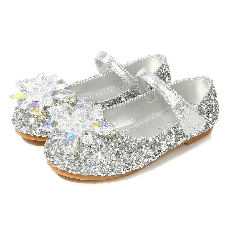 Детские туфли с кристаллами для девочек среднего и большого размера, кожаные туфли для детей, блестящие, расшитые пайетками, свадебные туфли для девочек, туфли на плоской подошве