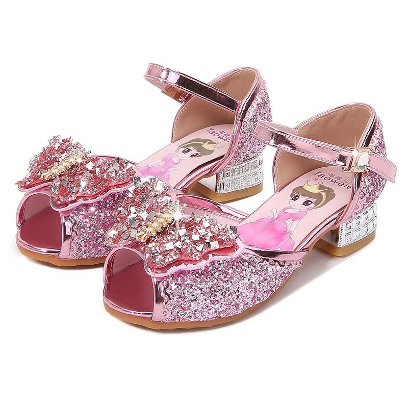 Сандалии для девочек для маленьких, средних и больших детей 3-11 лет, детские босоножки на высоком каблуке с бабочками и стразами, блестящие, сверкающие туфли