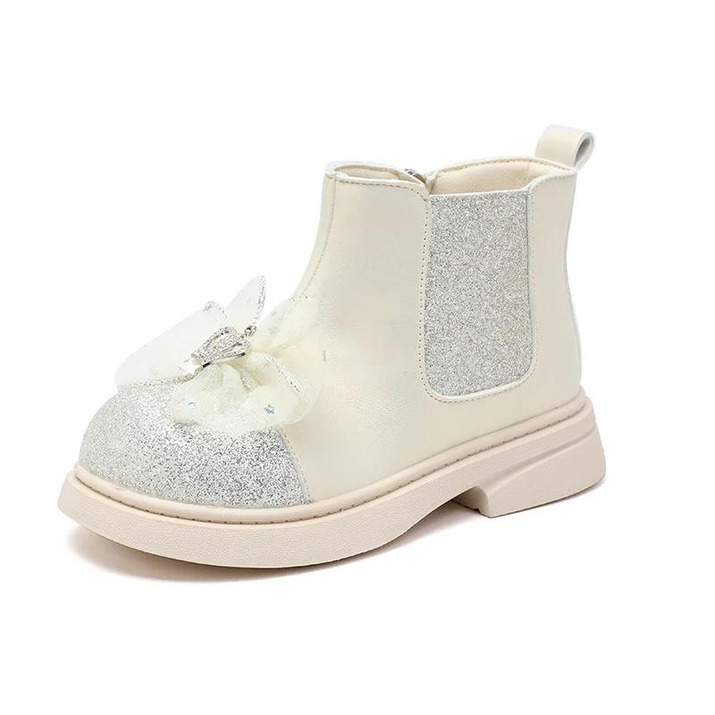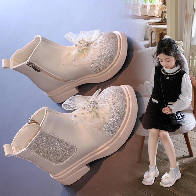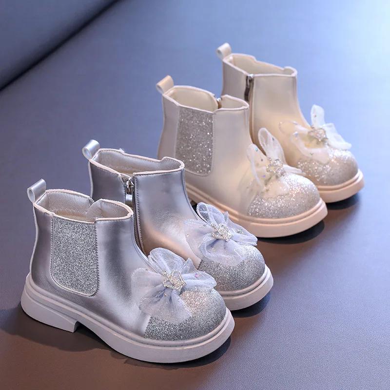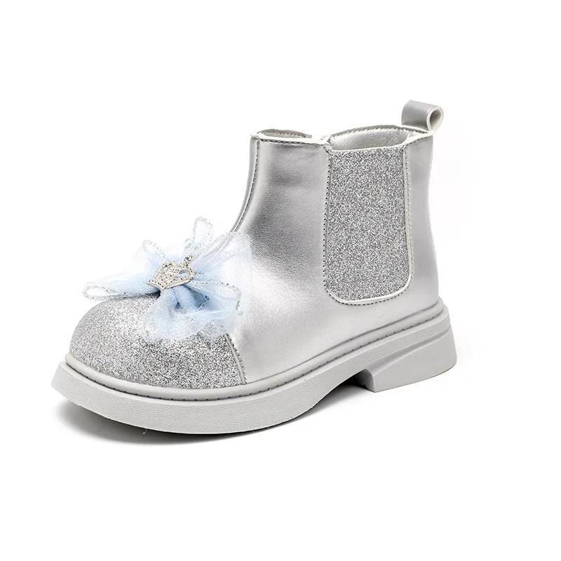 Детские осенние сапоги, роскошные милые сапоги принцессы для девочек, универсальные детские модные повседневные блестящие кожаные сапоги с толстой подошвой