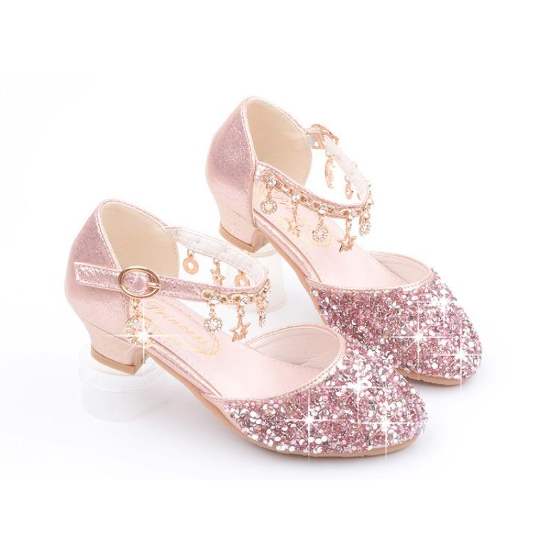 Обувь для девочек с блестками, детские босоножки с блестящими носками, детские туфли принцессы на высоком каблуке, весна-осень 2024, новинка