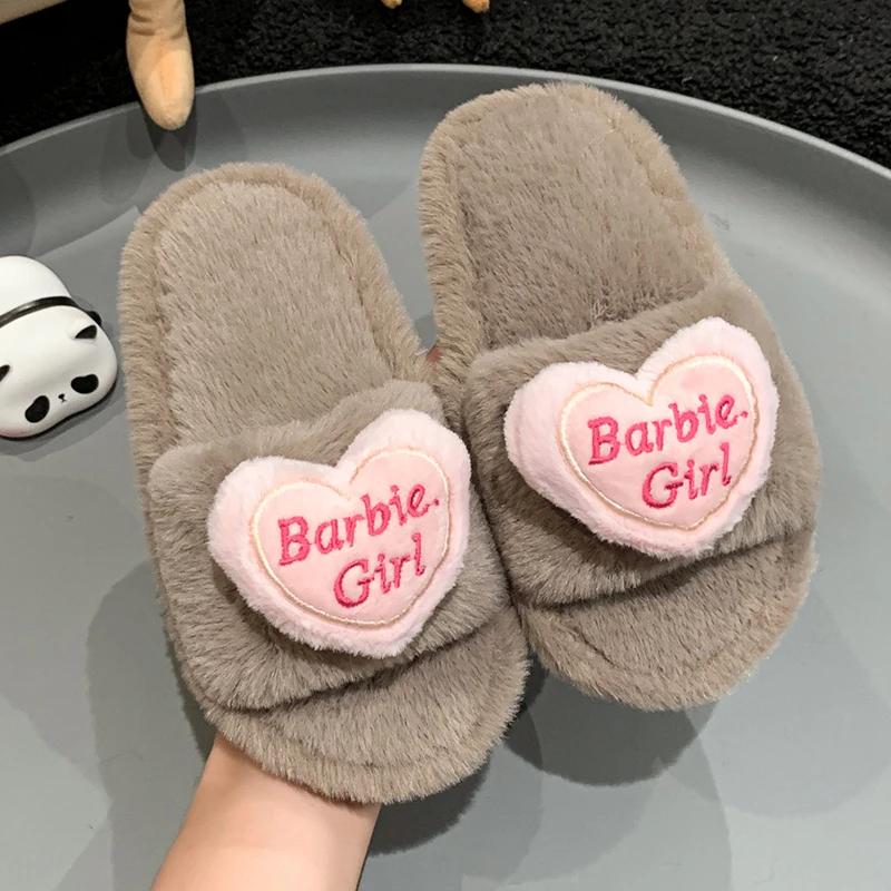 2024 Детские теплые плюшевые туфли для девочек, зимние новые модные тапочки в корейском стиле с мягкой подошвой, нескользящие, универсальные, шикарные