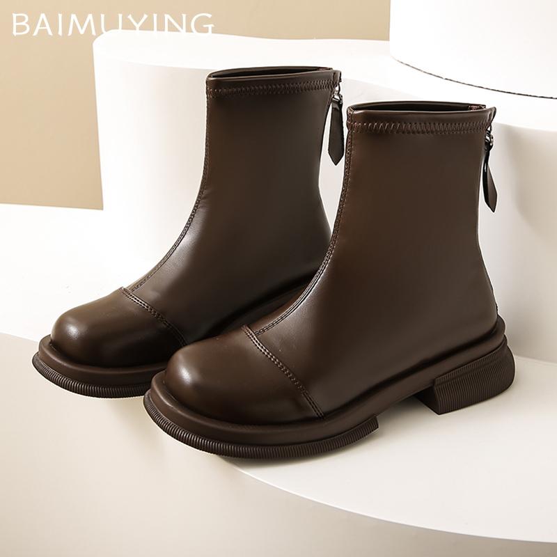 Кожаные массивные женские ботильоны на среднем каблуке в стиле ретро, зимняя обувь 2025 года, дизайнерские классические готические мотоциклетные ботинки для женщин — купить товар онлайн с бесплатной доставкой по всему миру!