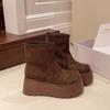 Леопардовая платформа женские зимние ботильоны замшевые туфли на высоком каблуке женские 2025 тренд зимние брендовые готические прогулочные мотоциклетные ботинки женские