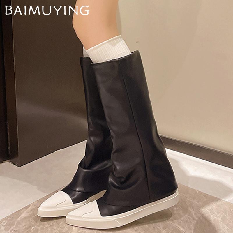 Женские ботильоны на плоской подошве с острым носком из кожи, модная зимняя обувь 2025 года, дизайнерские гладиаторы, высокие мотоциклетные ботинки до колена