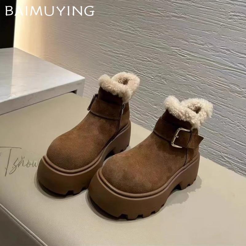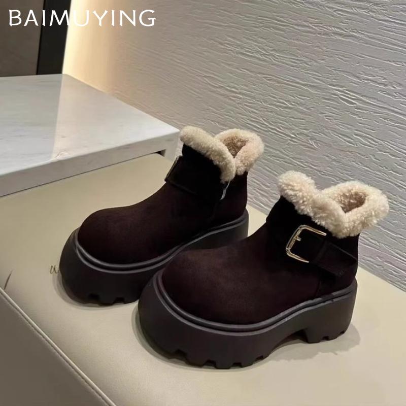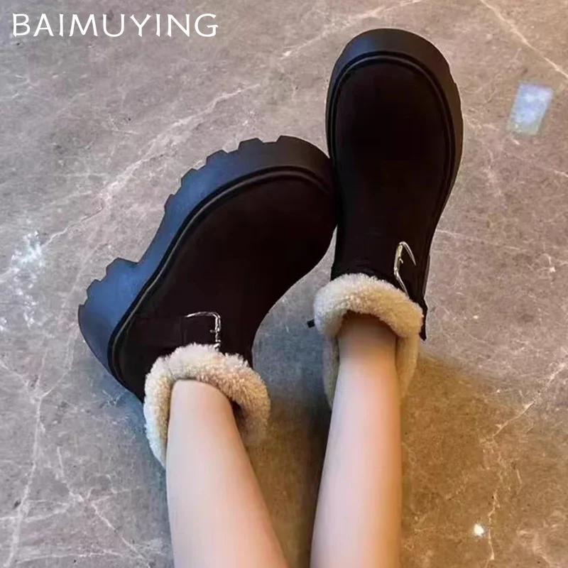 Ботильоны женские замшевые на платформе, теплые меховые туфли, женские, тренд 2025, короткие, плюшевые, брендовые, готические, кроссовки, мотоциклетные, Botas Mujer