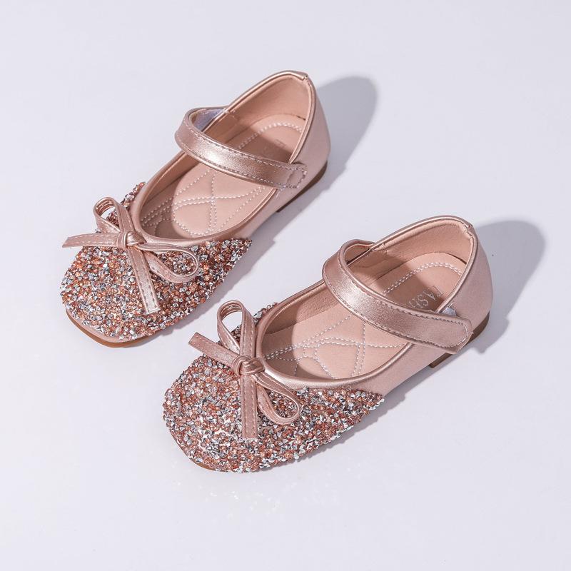 Детская кожаная обувь весна осень элегантная обувь для девочек на вечеринку модная детская обувь принцессы с блестками и бантом на свадьбу мелкая