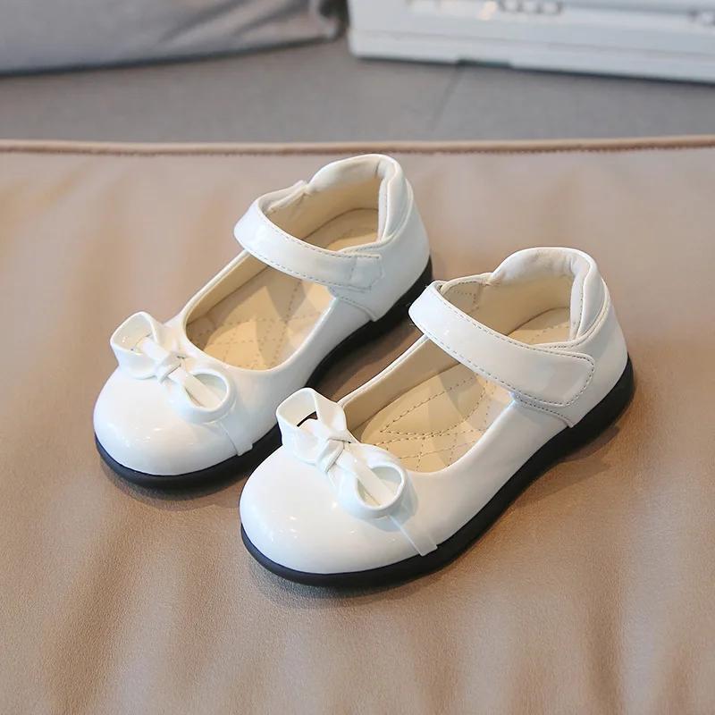 2024 Новые детские кожаные туфли, черные школьные туфли с бантом, неглубокие туфли Мэри Джейн, глянцевые детские модные туфли для девочек на плоской подошве