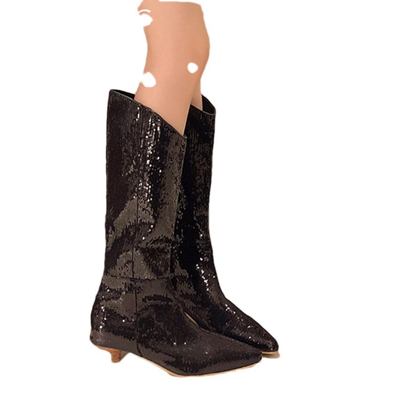 Остроносые женские высокие сапоги, элегантные модные туфли на среднем каблуке, тренд 2025 года, дизайнерские готические туфли-лодочки до колена, новые женские туфли