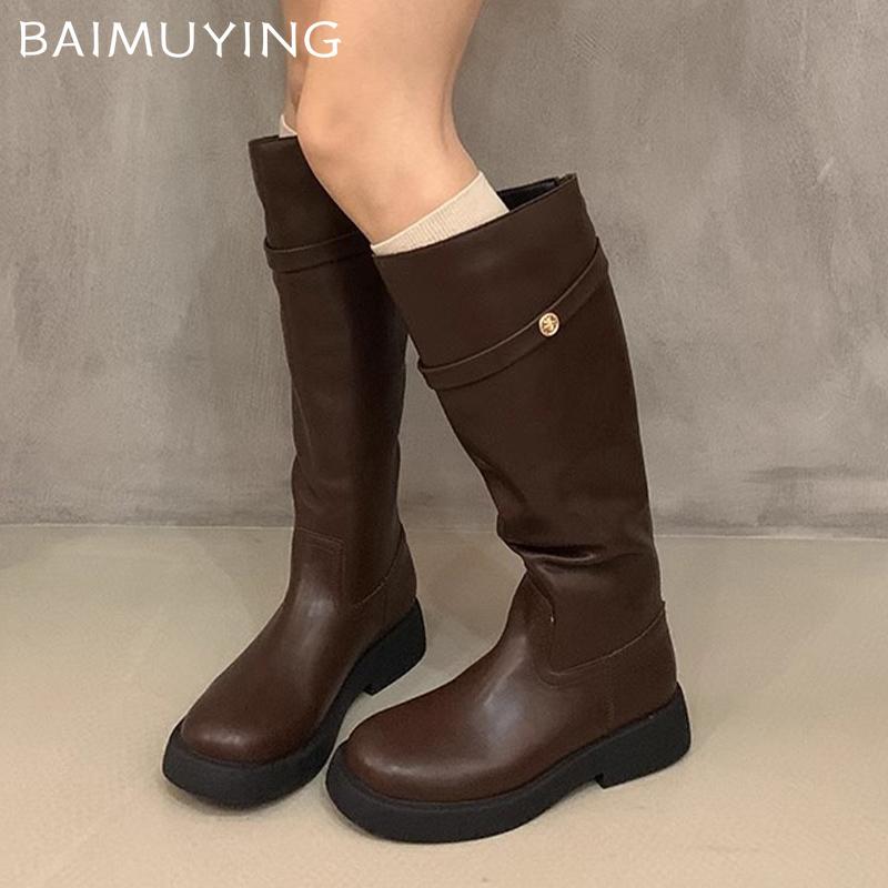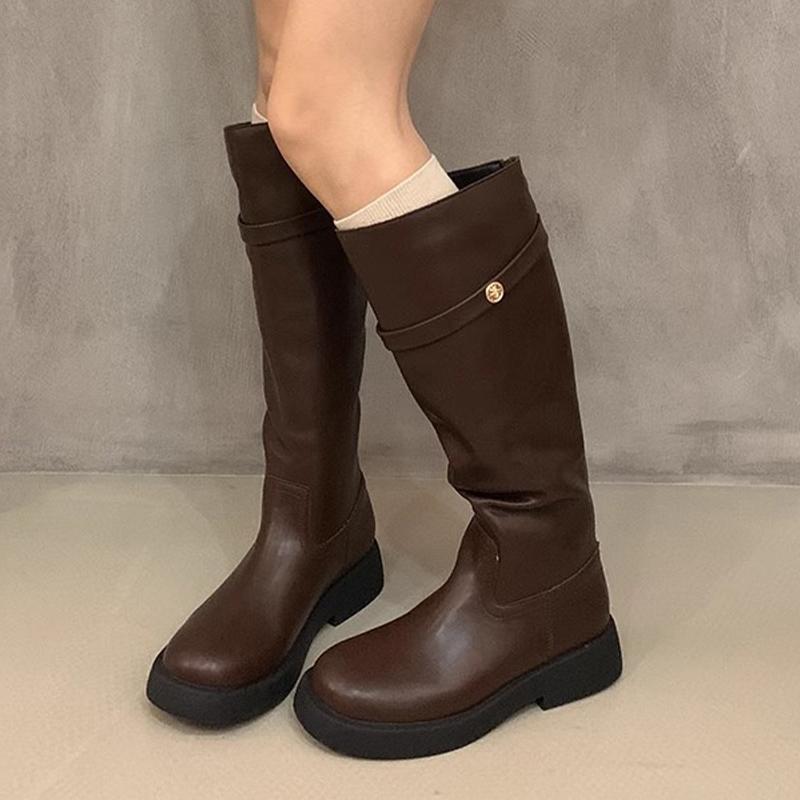 Зимние женские высокие сапоги из кожи до колена, модная обувь 2025 года, новый бренд, классические готические гладиаторские мотоциклетные ботинки Botas De Mujer