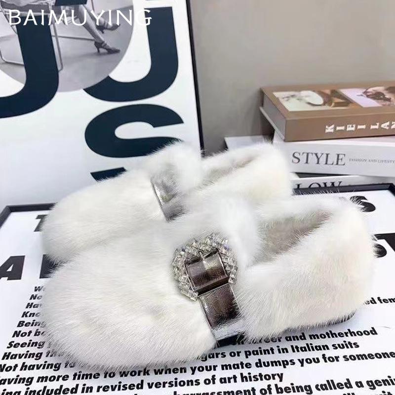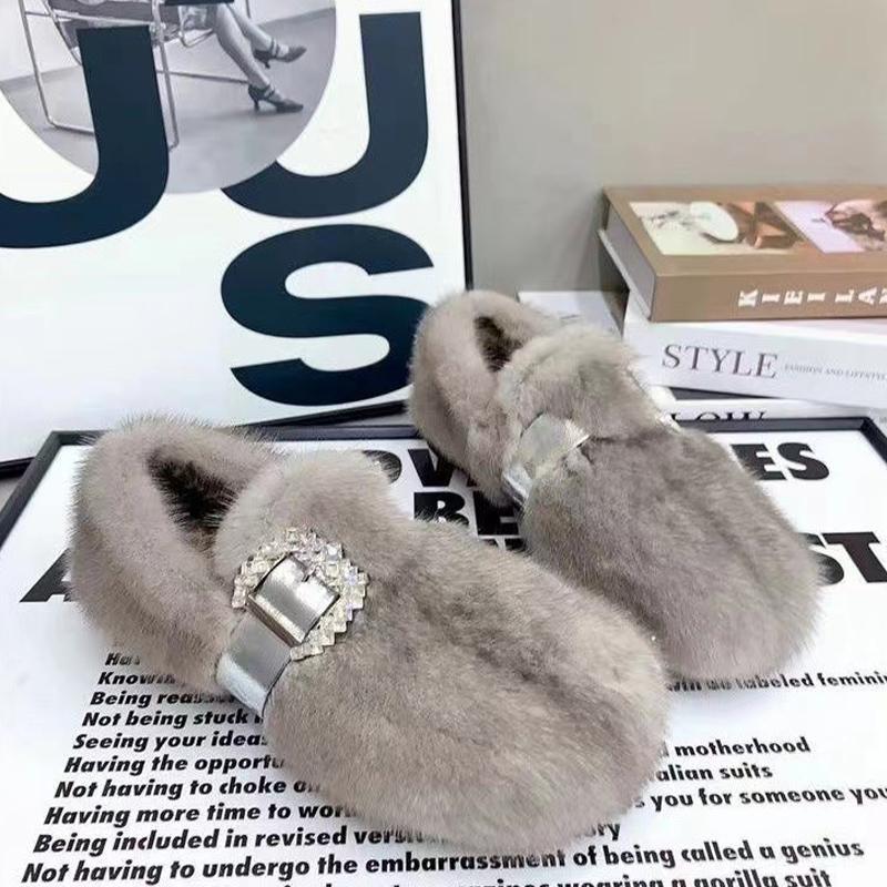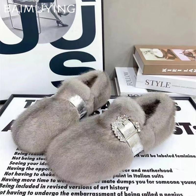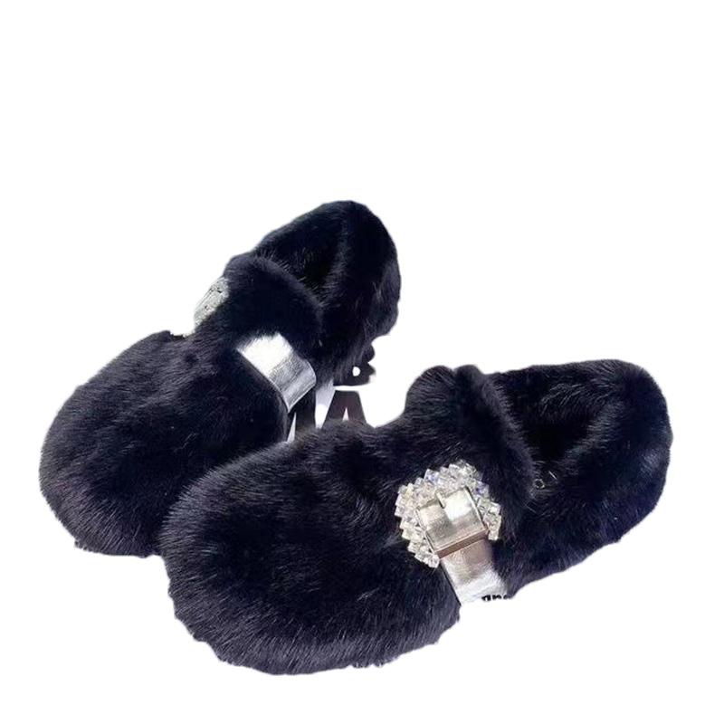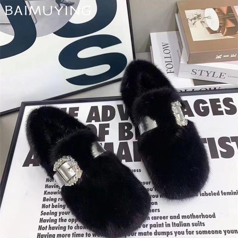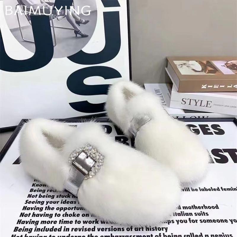 Меховые балетки женские зимние сапоги кристалл короткие плюшевые модные новые хлопковые туфли 2025 тренд зимние дизайнерские пряжки теплые женские ботинки