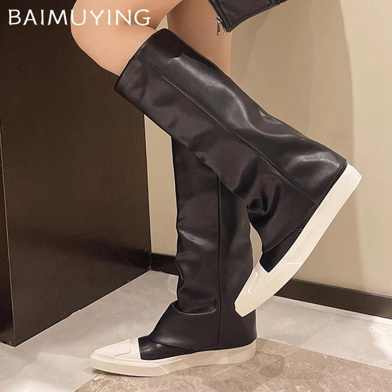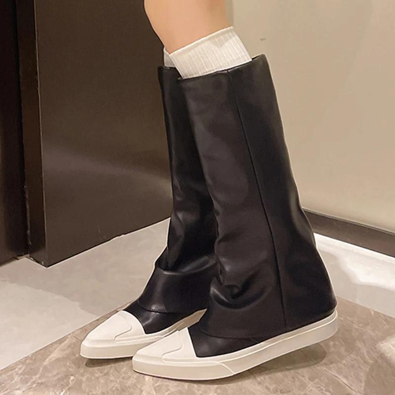 Остроносые женские высокие сапоги из кожи, модная зимняя обувь, новый бренд 2025 года, трендовые гладиаторские сапоги до колена, новые мотоциклетные сапоги Botas De Mujer