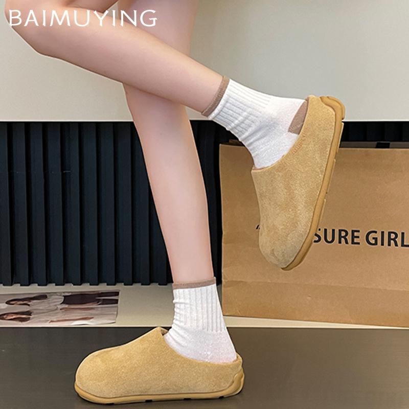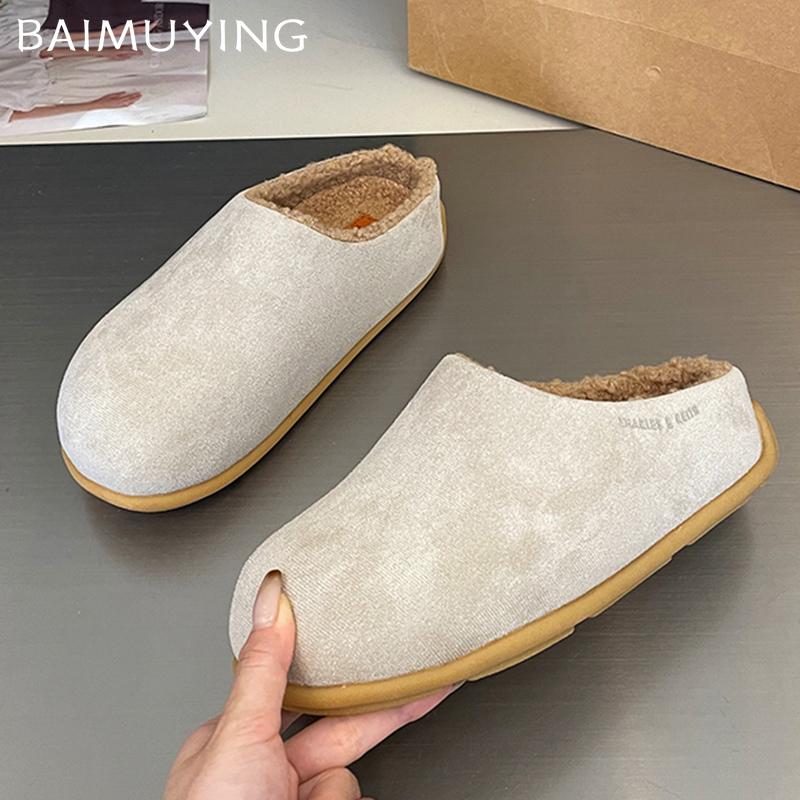 Женские туфли-мюли на платформе, замшевые туфли на плоской подошве, короткие плюшевые хлопковые туфли 2024 года, трендовые зимние теплые, удобные, повседневные женские туфли Zapatillas