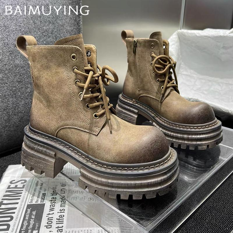 Женские ботильоны на платформе, массивные, на шнуровке, на среднем каблуке, модные туфли 2025 года, классические готические гладиаторы, зимние мотоциклетные ботинки Botas De Mujer — купить товар онлайн с бесплатной доставкой по всему миру!
