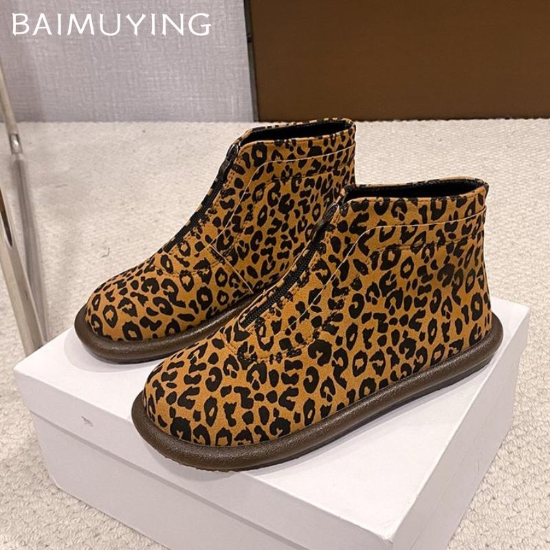 Леопардовые балетки женские модные ботильоны дизайнерские молнии замшевые повседневные туфли 2025 тренд новый бренд комфорт готика зимние ботинки женские