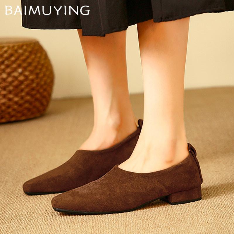 Туфли женские на толстой подошве из замши на среднем каблуке, модная элегантная обувь, новый бренд 2025 года, дизайнерские туфли-лодочки, зимняя классика, Mujer Zapatos — купить товар онлайн с бесплатной доставкой по всему миру!