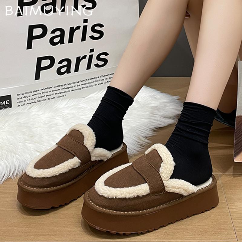 Замшевые балетки женские туфли-мюли меховые хлопковые тапочки на платформе дизайнерские короткие плюшевые зимние повседневные туфли 2024 года тренд теплые женские туфли Zapatos Femme — купить товар онлайн с бесплатной доставкой по всему миру!