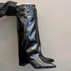 Острый носок женские высокие сапоги сексуальные толстые каблуки средней высоты до колена модные зимние дизайнерские туфли-лодочки готические мотоциклетные ботинки женские