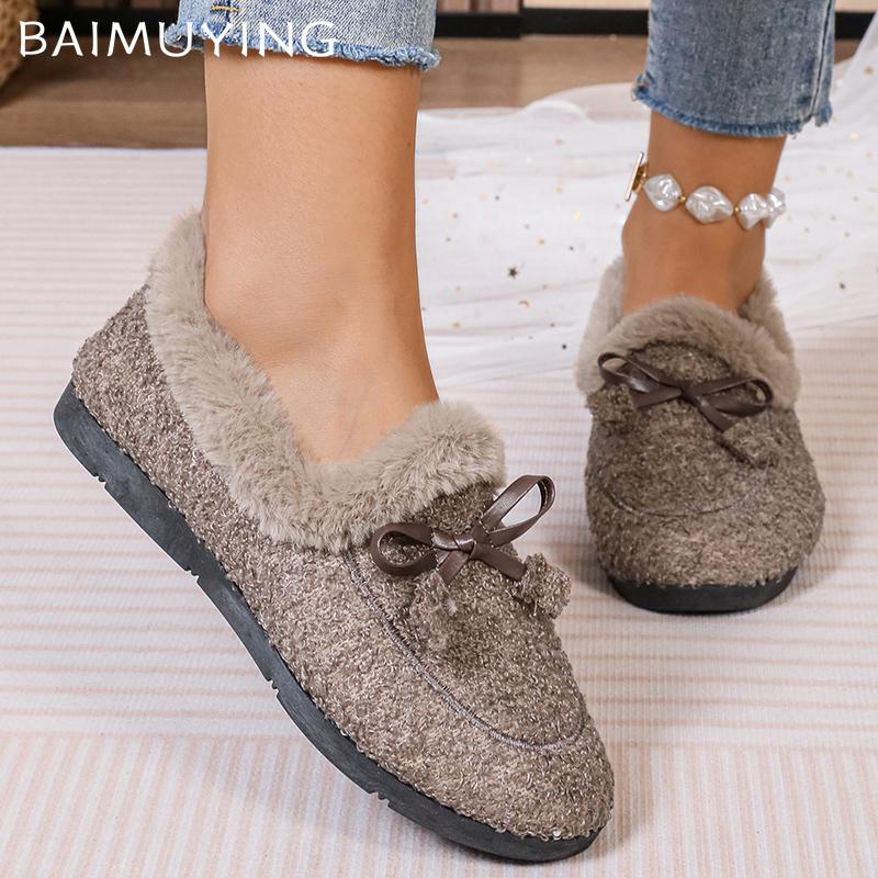 Туфли на плоской подошве женские мокасины с бантом из меха дизайнерская повседневная обувь короткие плюшевые хлопковые сапоги зимние новые брендовые теплые тренды 2024 года Zapatos Femme — купить товар онлайн с бесплатной доставкой по всему миру!