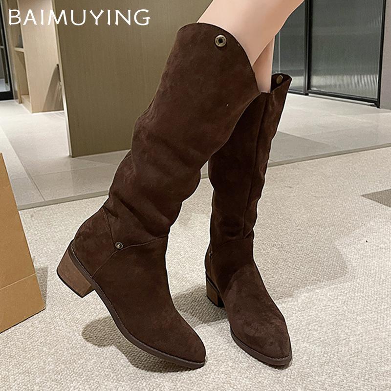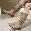 Женские высокие ботинки с острым носком, замшевые, на среднем каблуке, дизайнерские, зимние, массивные ботинки челси, тренд 2024, туфли-лодочки, готические ботинки для женщин