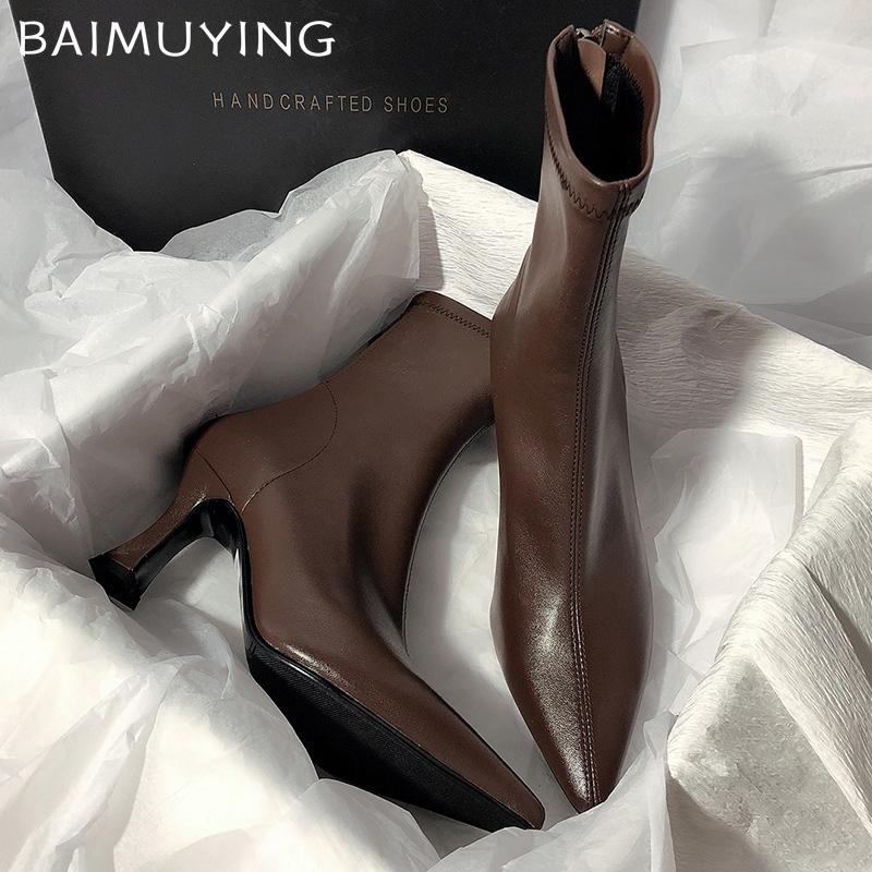 Зимняя мода Ботильоны с острым носком Элегантные туфли на высоком каблуке из кожи 2025 года Трендовые дизайнерские туфли-лодочки Гладиаторские туфли-лодочки женские — купить товар онлайн с бесплатной доставкой по всему миру!