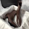 Зимняя мода Ботильоны с острым носком Элегантные туфли на высоком каблуке из кожи 2025 года Трендовые дизайнерские туфли-лодочки Гладиаторские туфли-лодочки женские