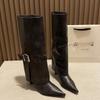 Женские высокие сапоги с острым носком, кожаные, модные, сексуальные, на среднем каблуке, тренд 2025, дизайнерские ботфорты до колена, готические, зимние, Botas De Mujer — купить товар онлайн с бесплатной доставкой по всему миру!