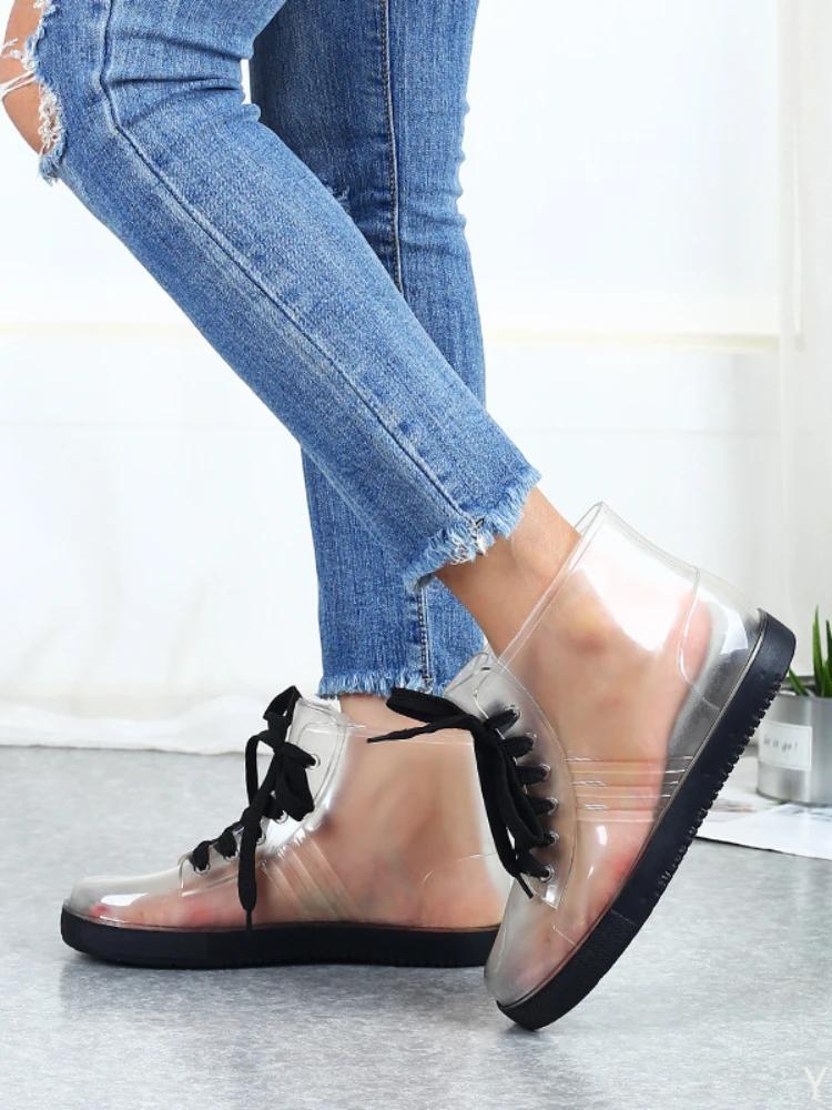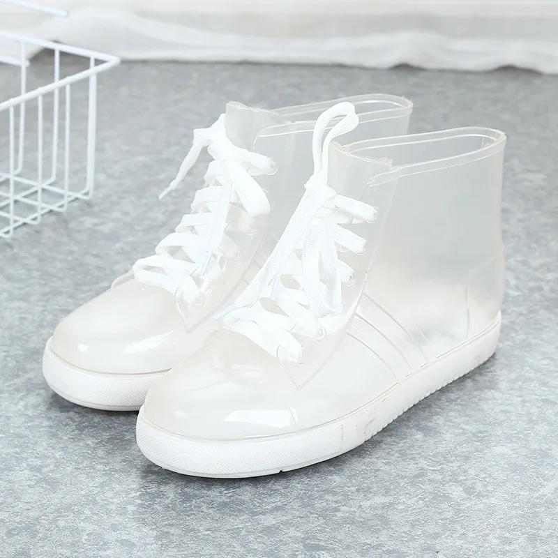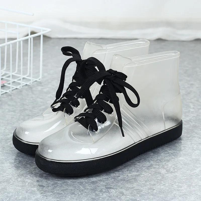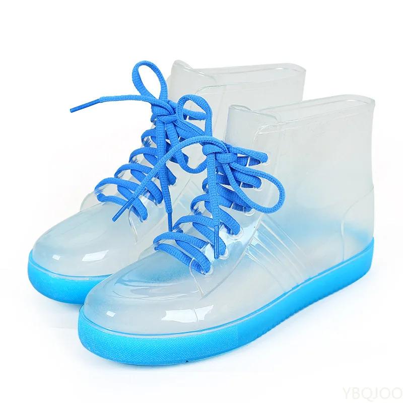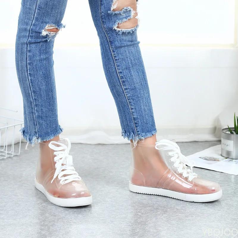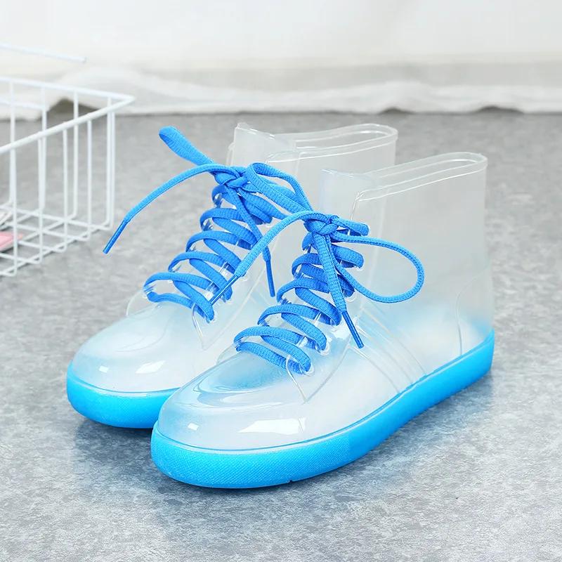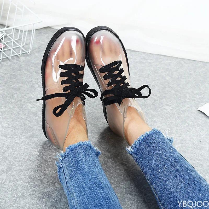 Модные прозрачные резиновые сапоги женские с пластиковыми ремешками студенческие повседневные водные туфли плоские нескользящие водонепроницаемые универсальные водные сапоги