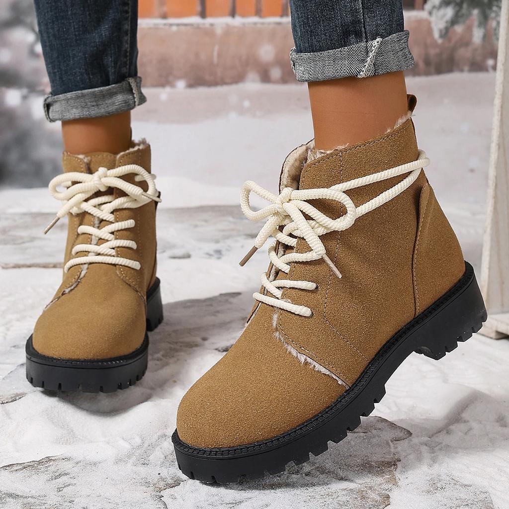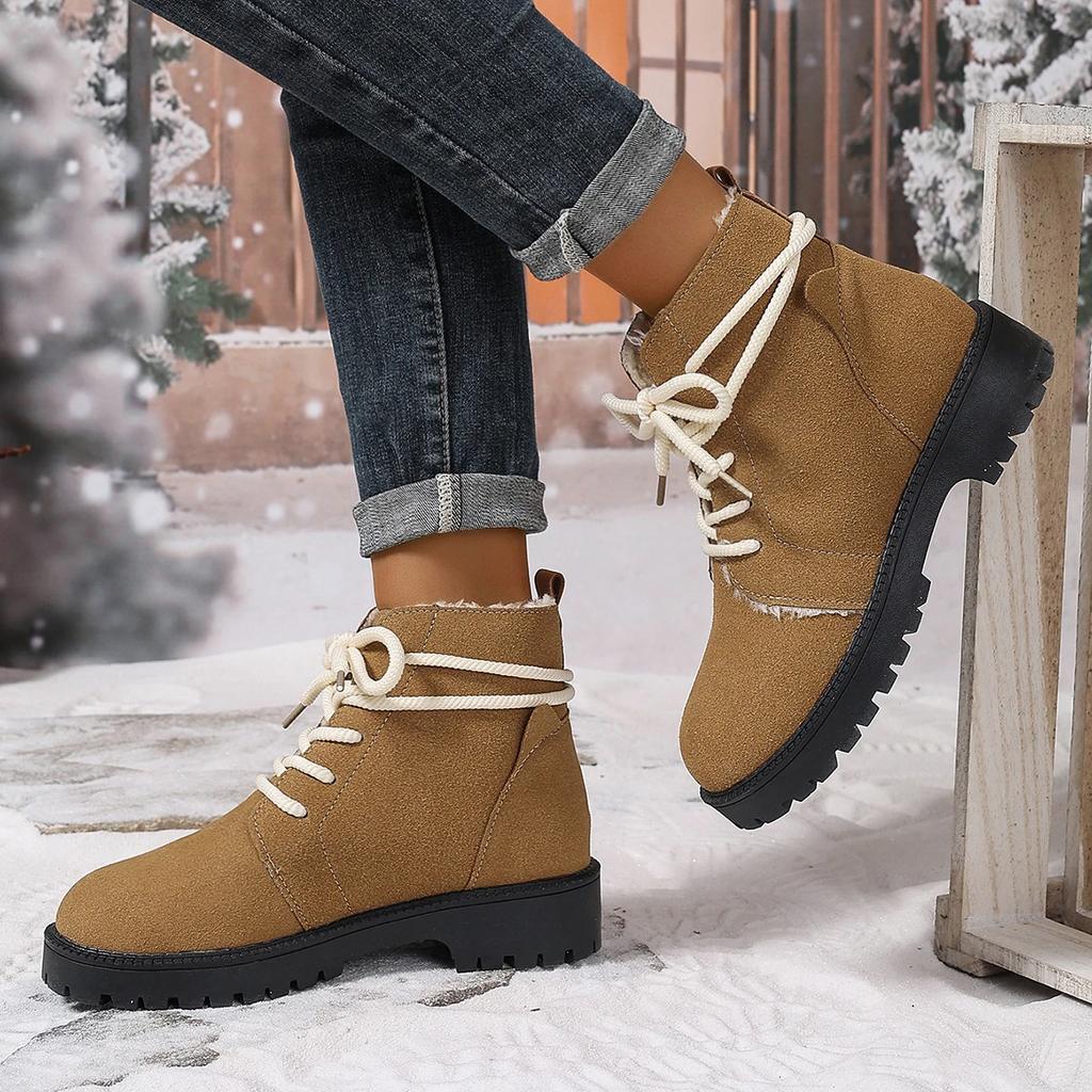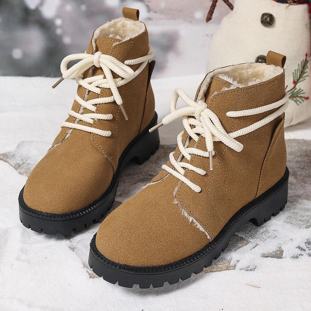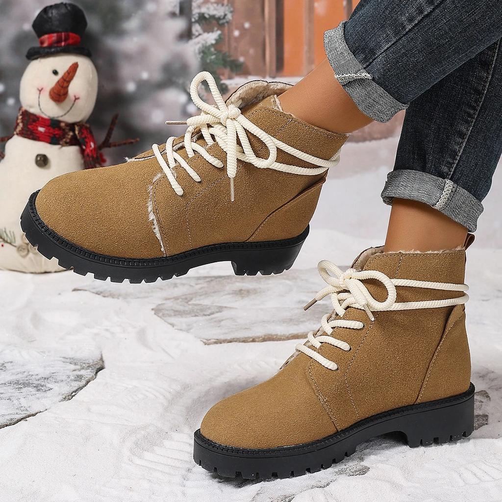 Женские зимние ботинки на шнуровке с мехом на низком каблуке, зимние ботинки на щиколотку, женские ботинки на платформе, зимняя обувь на каблуке