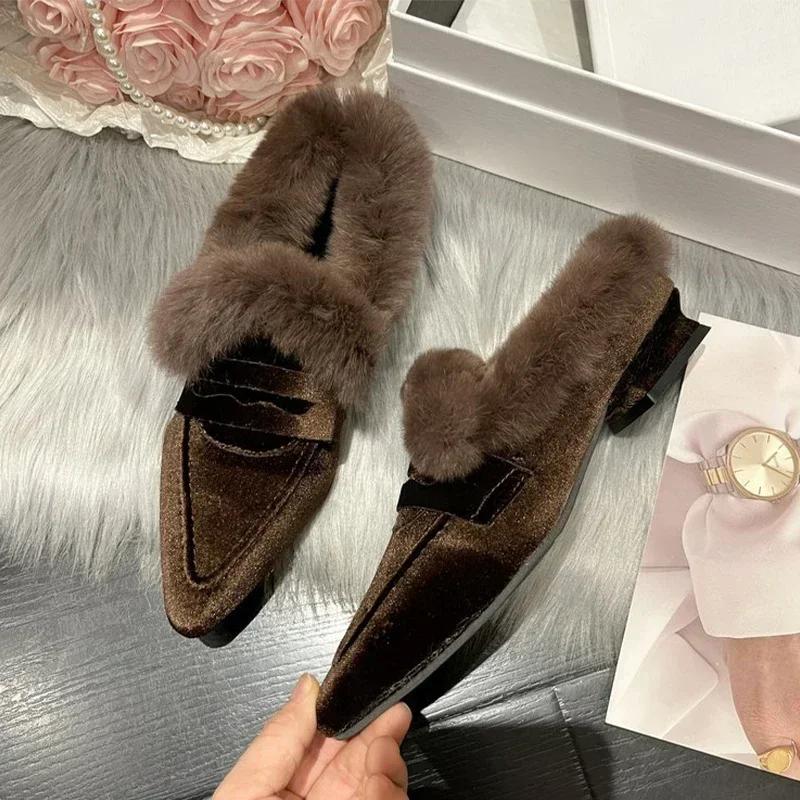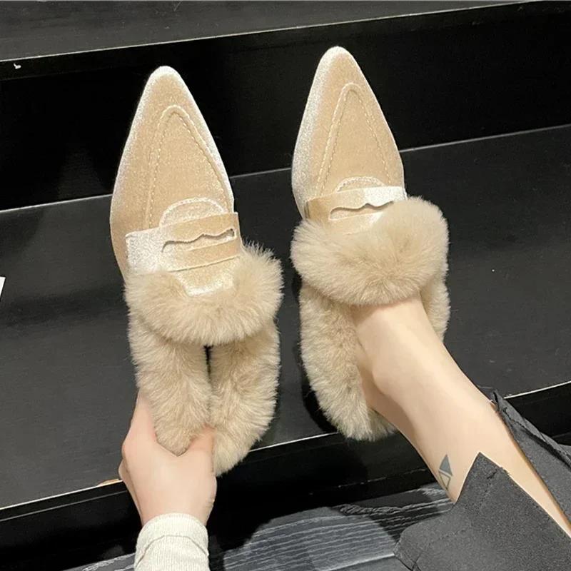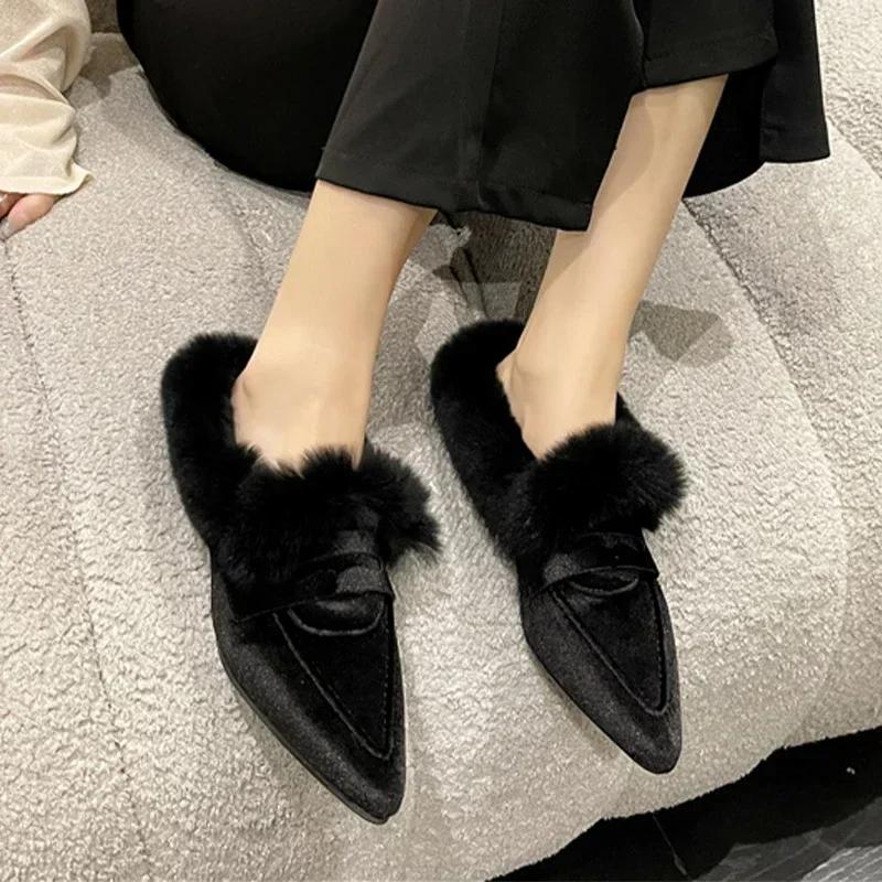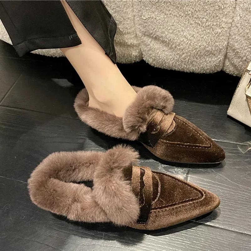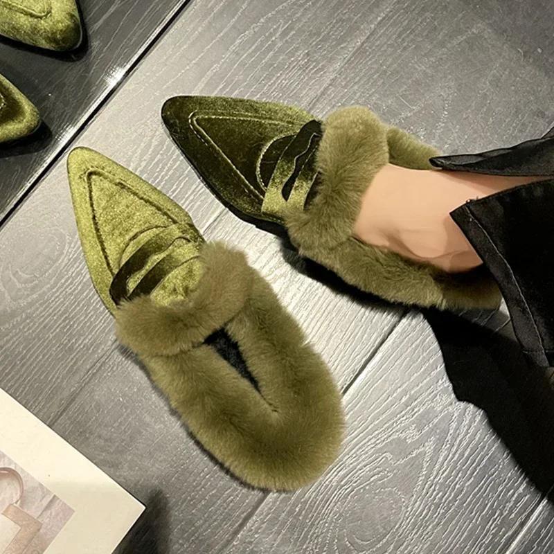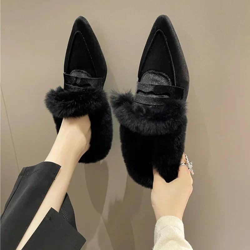 Меховые женские туфли на плоской подошве из хлопка с острым носком, замшевые теплые туфли, дизайнерские зимние ботинки, короткие плюшевые прогулочные сексуальные женские туфли Botas
