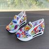 Женские туфли на танкетке, новые весенне-осенние модные кроссовки на платформе с круглым носком и цветочным узором, с вышивкой из сетки, увеличивающие рост