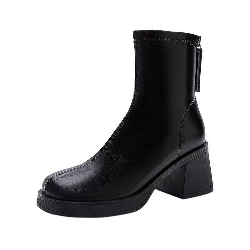 Женские ботильоны на платформе и высоком каблуке, дизайнерские массивные элегантные офисные кожаные туфли 2024 года, трендовые повседневные зимние ботинки для вечеринок и отдыха