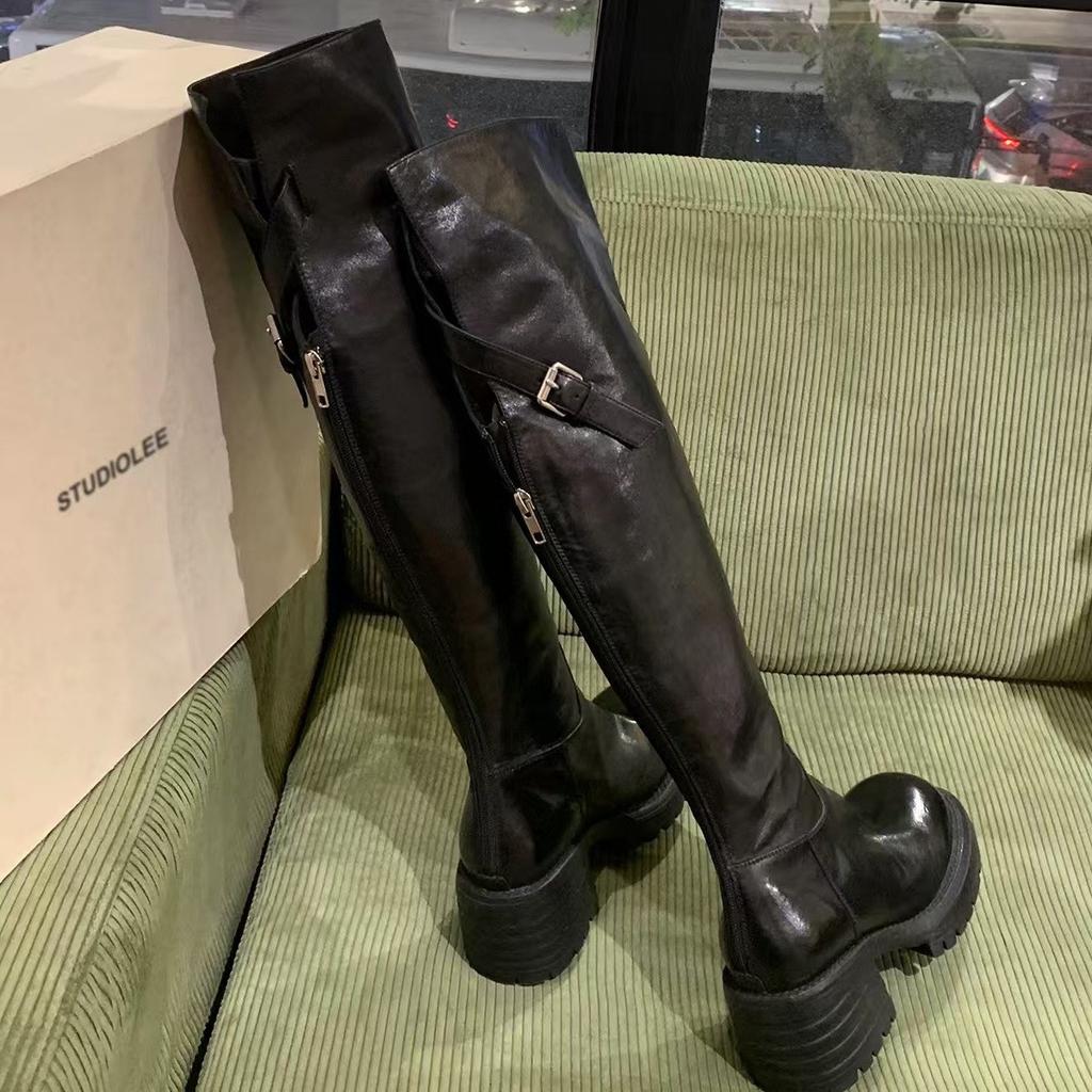 Grape Mom Studiolee Legs Fine Girl~ Washed Horse Skin Round Head Skinny Thick Bottom Thick Heel Over Knee Boots Women